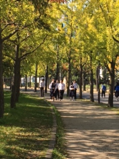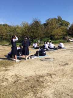 大阪城公園の中に設定されたポイントに移動し、お弁当を食べました。