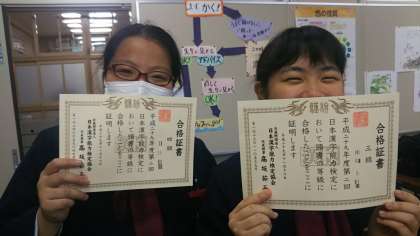 10月28日に全校一斉に受けた漢字検定の結果が返ってきました。