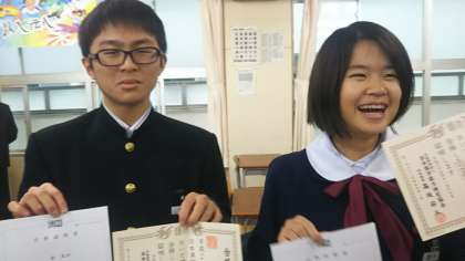 1年生は初めての受検ですが、2年生と3年生はすでに級を持っているので、全員それより高い級を受けたので、71.3%の合格というのは、大健闘と言えるでしょう。合格の通知に、「がんばって、よかった!」の笑顔がはじけます。「あと8点で合格だったのに…((+_+))」という人も「よーし、次はがんばって合格するぞ!!」とファイトを燃やしています。