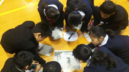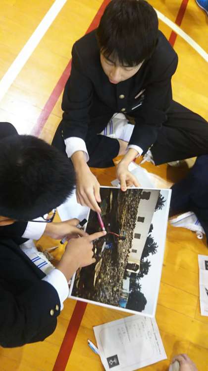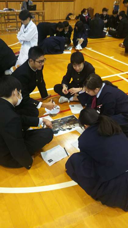グループに分かれ、1枚の写真をじっくり見て、想像されることを一人一人が真剣に語り合い、最後に写真の人物が何を言いたいのかを考えました。