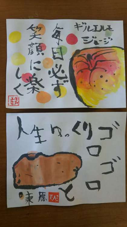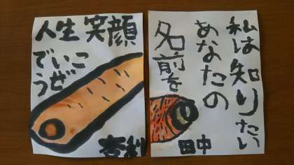 毎年描いているので、3学期の学校の風物詩になっています。職員室でも「いつも楽しみに見てます」という声があります。美術室に来た2年生は「わぁ、今年も描いたんや!」「先生、見てもいいですか?」「早く描きたい〜」とにぎやかです。