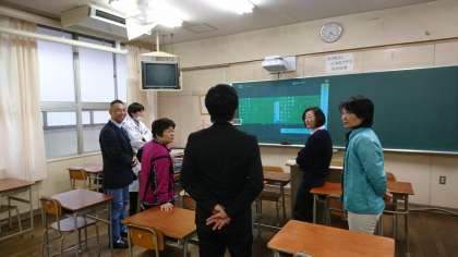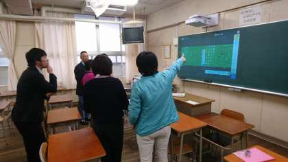ベネッセから講師の方に来ていただき、タブレットの活用方法や電波が届きにくい教室での接続の仕方など、授業をよりわかりやすく楽しくするための研修会を行いました。会議と重なり一部の先生は残念ながら参加できませんでしたが、「これは、どのようにしたら?」「この画面を提示するためには?」など活発に質問が飛び交いました。
