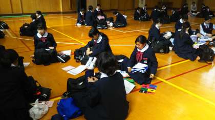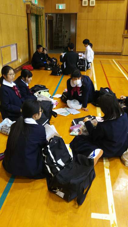 明日の本番を控えて、今日は持ち物チェックです。各班に別れて、班長の指示のもとチェックが進みます。