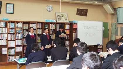 3年生が6月の修学旅行に向けて作成したガイドブック。各班が担当したページについて解説する発表会を4月20日(金)6限に行いました。調べたことに加え、自分たちの考えや修学旅行がより楽しみになるような情報を学年の仲間に伝えることができました。