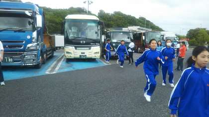 紀ノ川サービスエリアに予定通り10時に着きました。少し酔った人もいますが、みんな元気です。