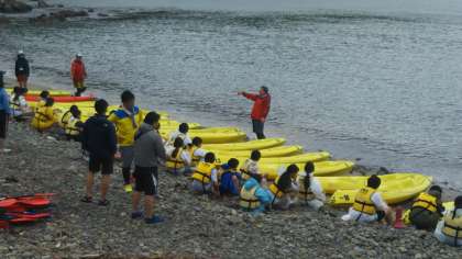 全員カッパを着ているので、あまり寒くもなく海の活動を終えました。