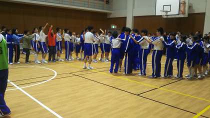 じゃんけんをして、負けた人は後ろについていきます。先生も生徒もない!そこにあるのは運だけ?!