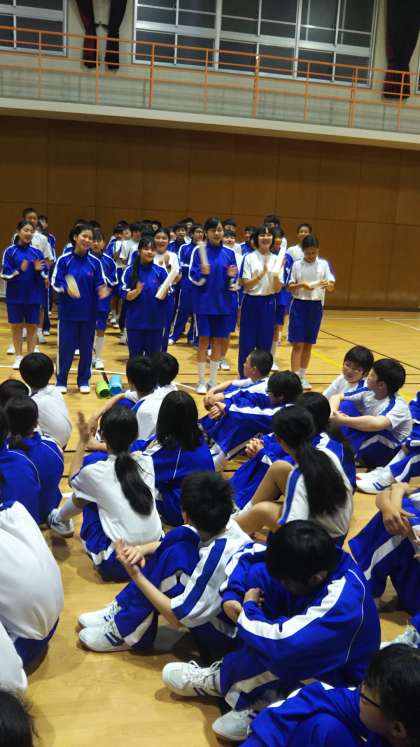 「ようこそ南中へ」と「やってみよう」の歌声。2年生からのあたたかい歓迎です。