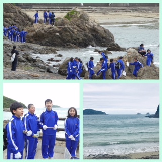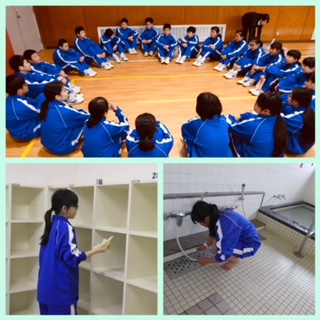 清掃はとても一生懸命していました。集団『考』動では、靴やかばんの並べ方、整列、あいさつの練習などをしました。風が強く寒いですが、海辺や山でも元気に活動しています。