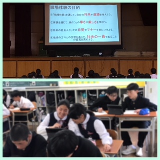 6月14日(木)15日(金)の2日間、2年生は周辺地域の様々な店舗や公共機関で、職場体験をさせていただきます。今日から、そのための取り組みが始まりました。