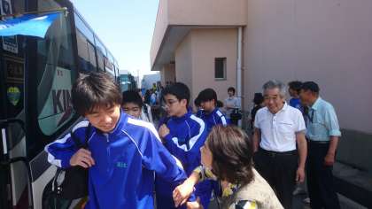 各ご家庭から送り届けていただき、サンアリーナに集合して離村式です。