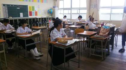 南中学校は小規模校なので、教室の中もゆったりしています。