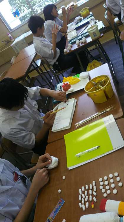 将来の夢をモチーフにして、粘土で立体作品を創るのです。