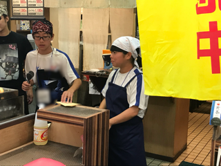 観光客で混み合っている黒門市場で、貴重な体験をさせていただきました。