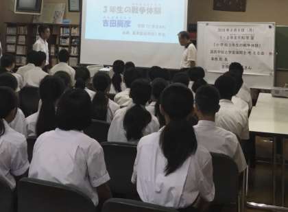昨年に続き、今年も平和学習のために、戦争体験を語って下さる語り部の方が来校されました。