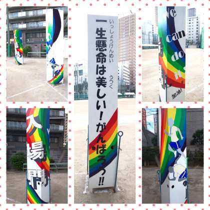 ということで、裏側(保護者席からは見えないのですが)に言葉を書き入れました。