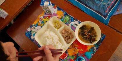 本日のメニューは、鶏肉のしょうゆマヨネーズ焼き、なめこのみそ汁、