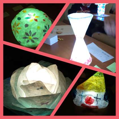 3年生が美術の授業で制作していた、張り子のランプシェードが完成しました。