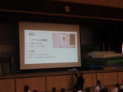 続いて、本日は生徒会より、SNSとの適切なかかわり方についての話をしてくれました。