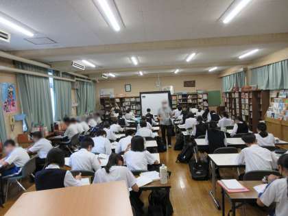 会場に入りきらないほどの南中生が、放課後学習会に参加しました。