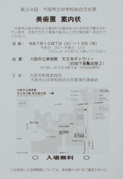 第34回 大阪市立中学校総合文化祭の美術展が大阪市立美術館で行われています。