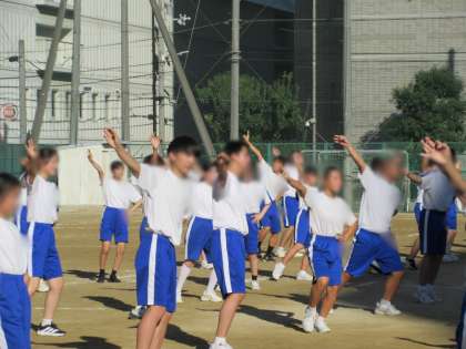 楽しくかつ、互いを思いやりながら、学年全員で行う演技。