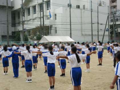 今週金曜日の体育大会に向けて、全体練習を実施しました。