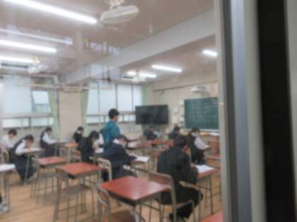 3年生のみんなも、これまでの学習の到達度を図るとともに、入試も想定しながら、各教室に分かれて集中してテストに向き合っています。