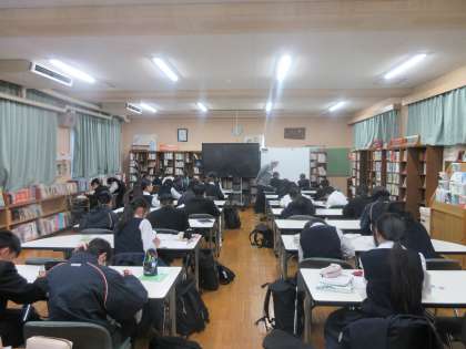 学年に関係なく多くの生徒が図書室に集まり、静かに自学自習を進めています!!