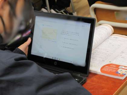 明日からの期末テストに備え、タブレットを活用するなどし、各自の課題に取り組んでいます。