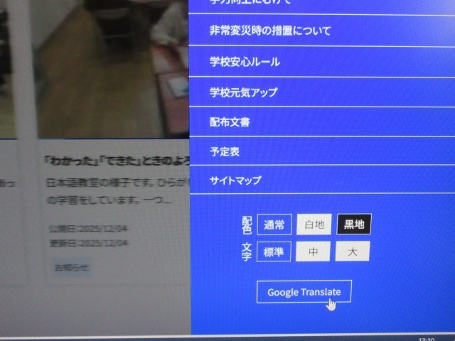 (右上のメニューを開けていただき、一番下の「Google Translate」をクリックしてください。)