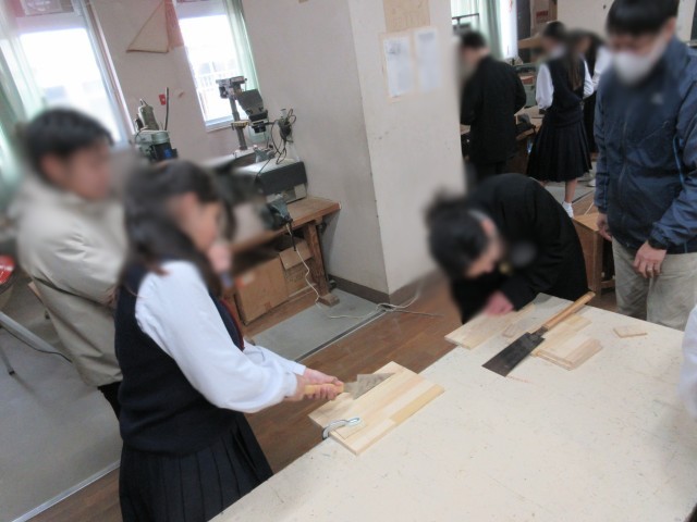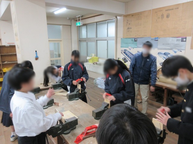 のこぎりを使って木材を切断したり、やすりで形を整えたりと、必要な道具を使い、自分の力で完成をめざして取り組んでいます。