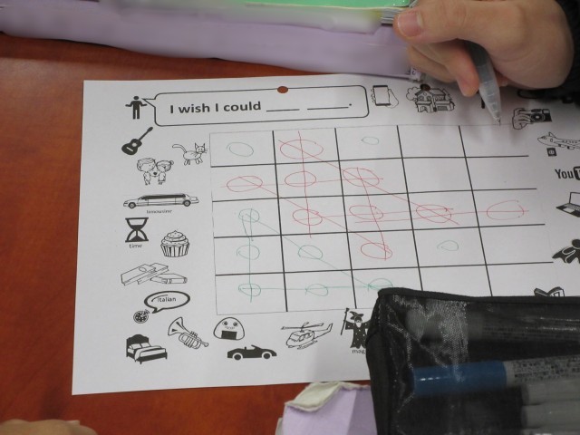 互いに英語で話し、勝負にこだわりながらも、楽しみながら自然に英語に親しめるよう工夫された授業でした。