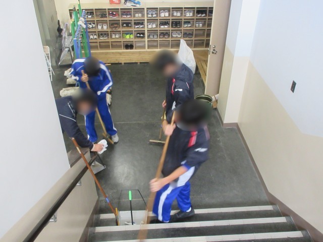年末を迎え、本校ではバスケットボール部・体操部・水泳部の生徒たちが、一年間の練習で使用してきた体育館や格技室の大掃除を行いました。