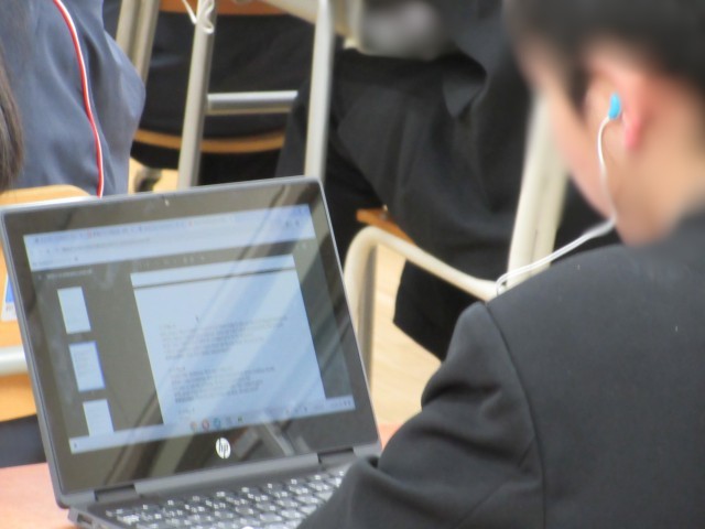 イヤホンを使ってリスニング問題にチャレンジしたり、目的に応じた難易度の問題に取り組んだりするなど、学習内容を自分で決めて進めています。
