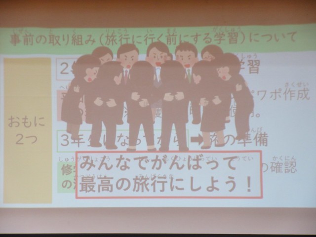 本日6時間目2年生は修学旅行の取り組みが始まりました。先生から半年後どこに行くのか、何をするのか、そして、何を学ぶのかを学習しました。