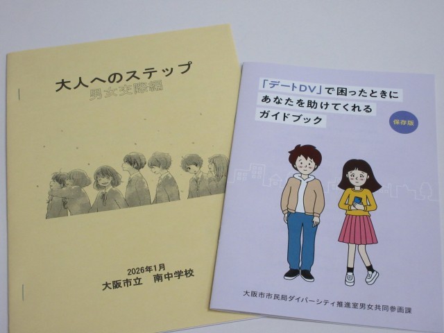 先週に引き続き5・6時間目に性教育の勉強をしました。先週は男女交際について勉強し、今日は「デートDV」について学びを深めました。先生の寸劇を見て何がダメなことかをしっかりと考え意見交流をしました。後半には生徒みんなが額にシールを貼り、しゃべらずチーム分けをしていました。中にはシールを2枚貼っている生徒もいて、どうなるのかなと見ていましたが、さすが南中生です。2枚貼っている生徒も暖かく受け入れ、それぞれの「個性」を認め合っていました。仲間外れにするのではなく、包み込む考動をした2年生に感動しました。