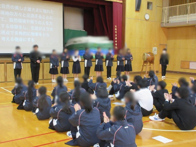 本日2年生の学年集会では修学旅行の班長と、レクリエーション係の発表を行いました。班長たちはそれぞれがどのような修学旅行にするのか、そして、レク係はみんなが楽しくできるように企画を考えてくれています。これからそれぞれの取り組みが始まり、悩むこともあるでしょうが、助け合いの精神を忘れずに取り組んでいきましょう。