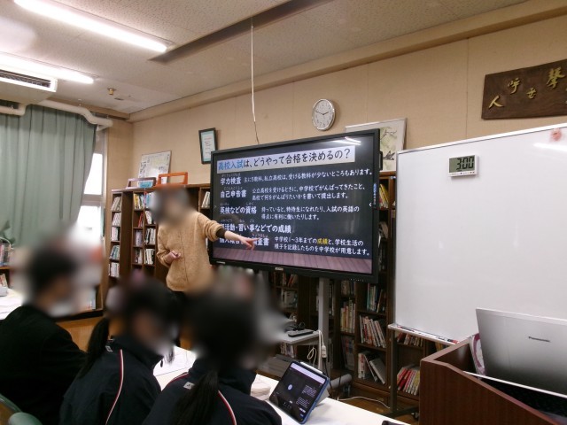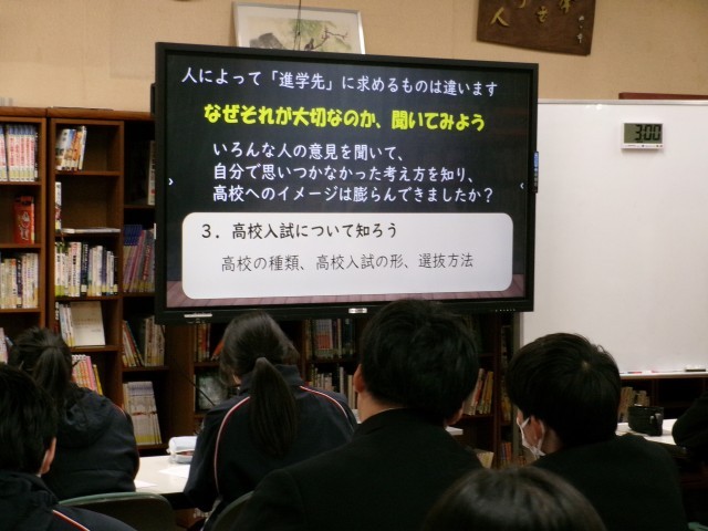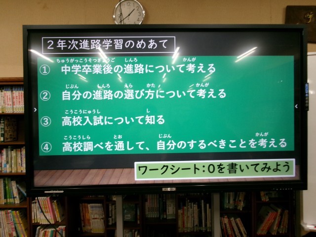 本日2年生は5.6時間目に進路について学びました。 先生から高校入試の仕組みや、高校の種類について指導してもらいました。