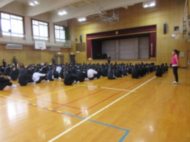 本日、3学年全体で行う最後の全校集会でした。