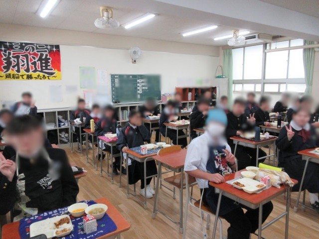 本日の給食は、新たな進路へ羽ばたく3年生へ向けて、卒業を祝う気持ちの込められた献立でした。