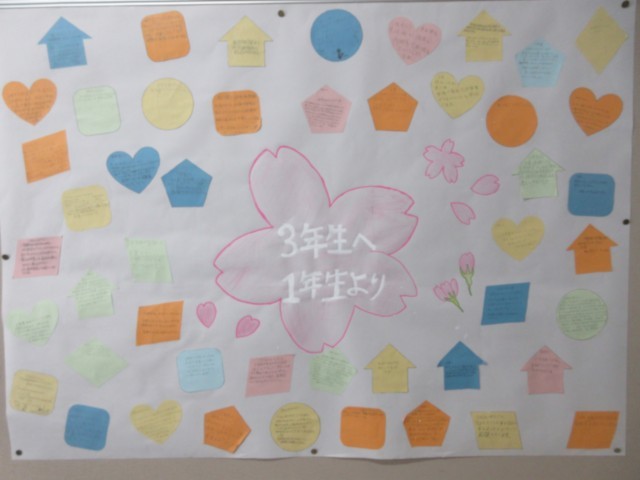 明日も、それぞの立場のみんなが、そんな「感謝」と「エール」に満ち溢れた、温かい時間の中で3年生の門出をお祝いしましょう。