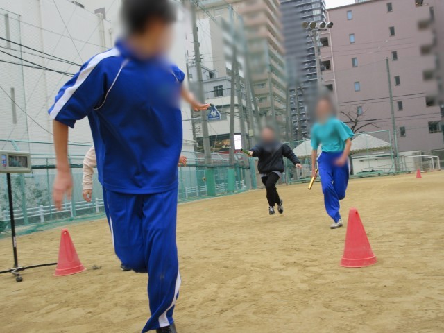 リレー形式でトラックを走り、楽しみながら持久力などの向上を図りました。