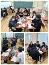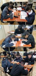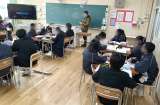 3時間目、3年2組は、社会です。明日から始まる学年末テストにむけて、テスト勉強を...