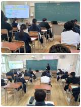 5時間目、2年1組は、英語の研究授業です。 今日のねらいは、「現在完了(経験)の...