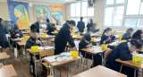 2時間目、1年2組は、音楽です。 お箏の実技テストです。 一人ひとり「さくらさく...