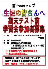 中間テストに引き続き、テスト前学習会を行います。回数・時間とも十分とはいえません...