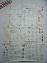 平和学習の成果を壁新聞にして、展示しています。(写真はその一部)