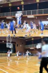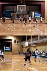 本校の体育館で、バスケットボール部が他校との合同練習をしています。 2校が来てく...