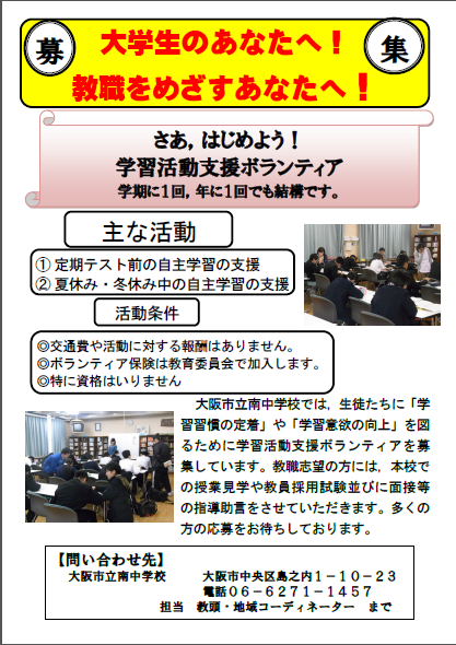 南中学校では学習支援ボランティアを募集しています。 http://swa.cit...